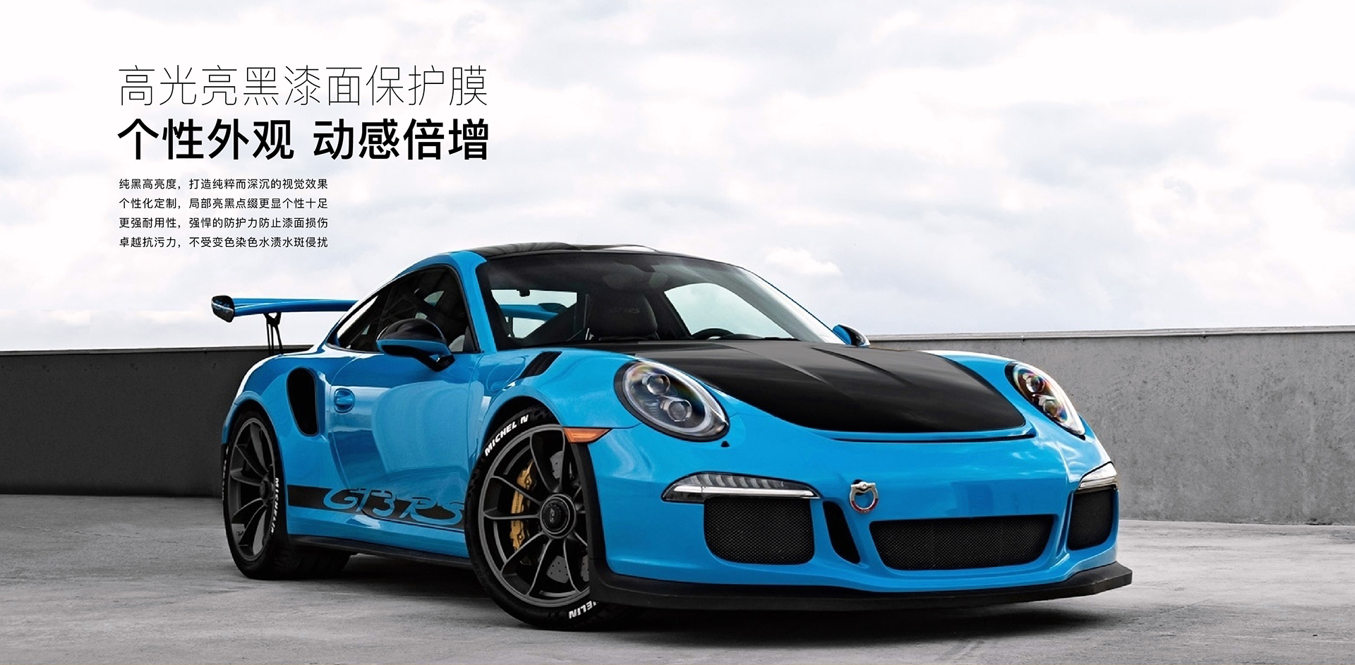 呈现带有高级光泽感的纯净黑色,使爱车焕然一新;还可以为车辆外表进行双色点缀,提升吸睛度及个性化,同时具有优越的抗污性及绝佳防护力,个性化外观与防护力兼得!